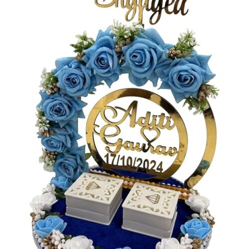 Unique Palette Beautiful Blue JUST Engaged Wedding Ring Platter(Model-2) | Wedding Ring Platter | Engagement Tray